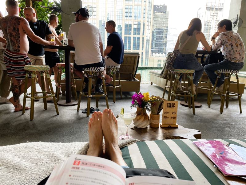 プロンポン駅付近 エムスフィア5階のプールバーでお勉強するわたし